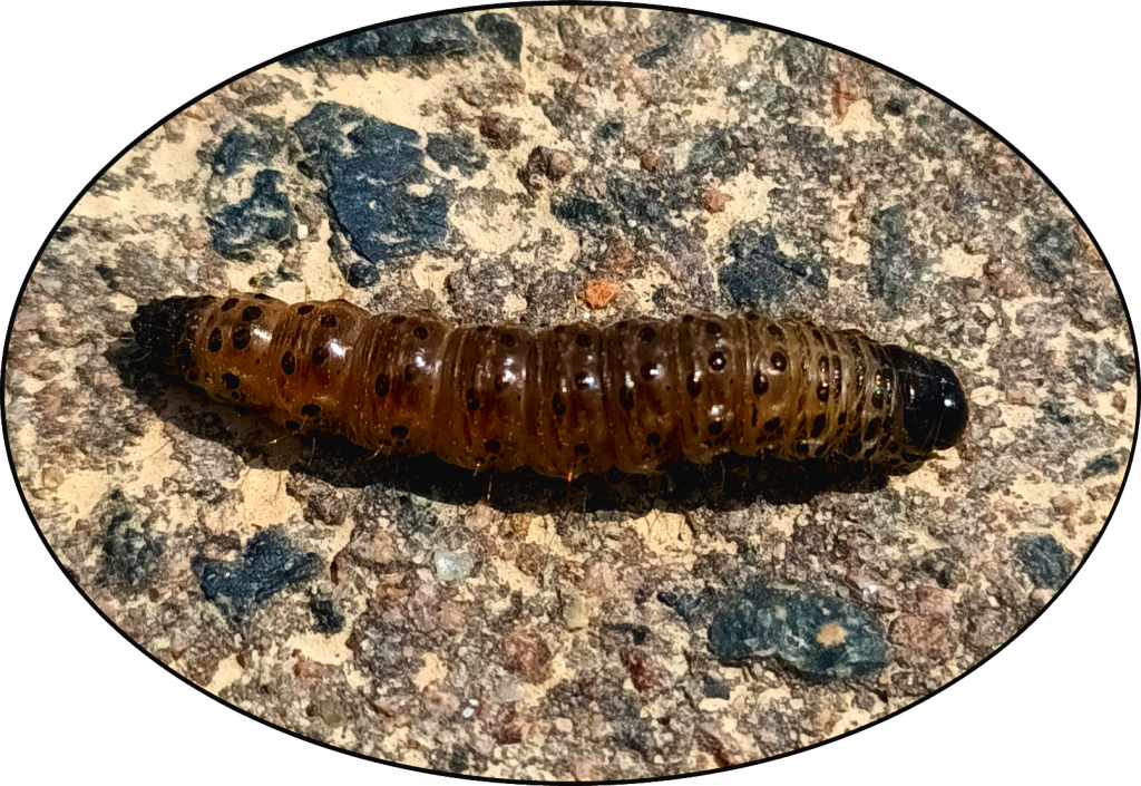 Die grüne plump wirkende Raupe lebt versteckt und gut getarnt an den Blättern der Wilden Schlehe oder Steinweichsel, seinen Futterpflanzen.