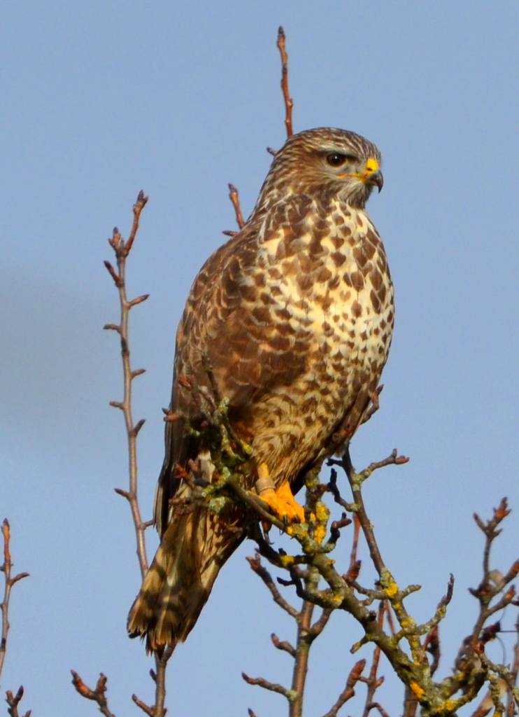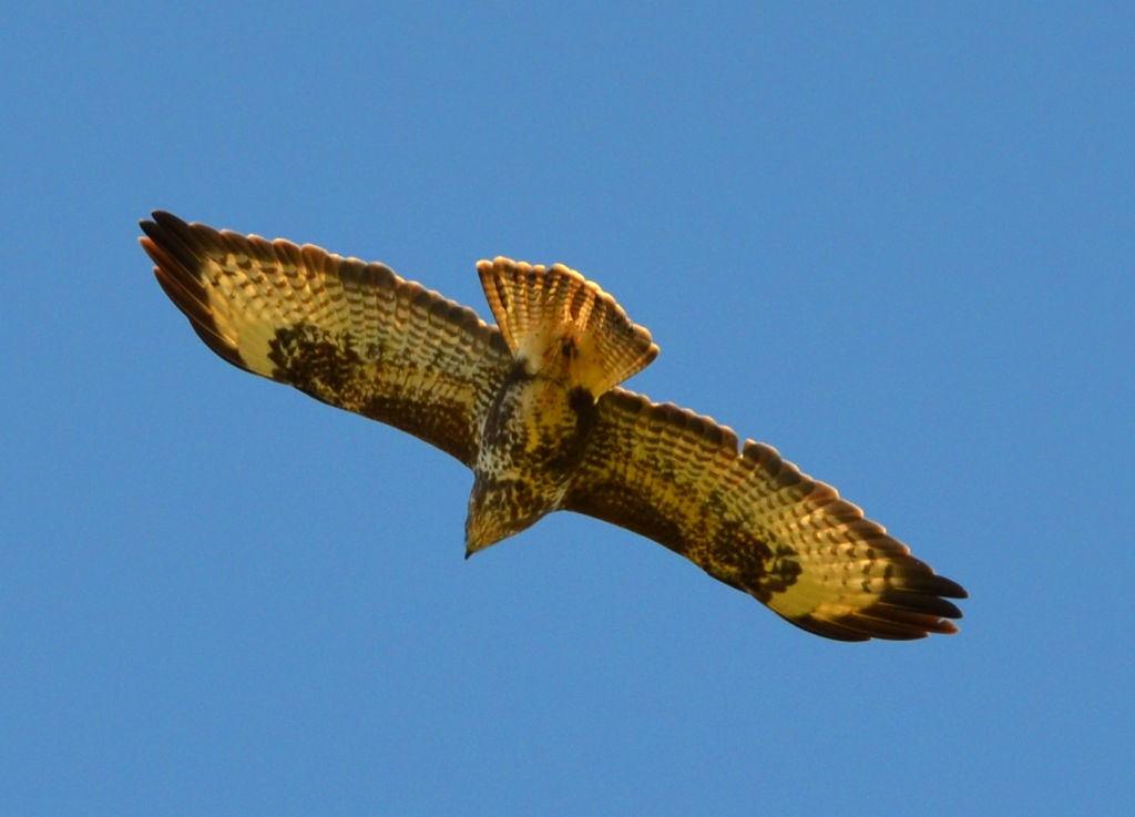 Sieht man einen größeren Greifvogel am Himmel seine Kreise ziehen, so handelt es sich zumeist um einen Mäusebussard. Seine Lieblingsnahrung erschließt sich aus seinem Namen. In der warmen Jahreszeit liebt er es, sich mittels Ausnutzens der Thermik weit in den Himmel hinaufzuschrauben, bis man ihn vom Boden aus nur noch als winzigen Punkt wahrnehmen kann.