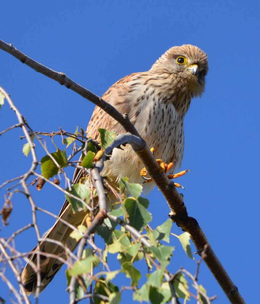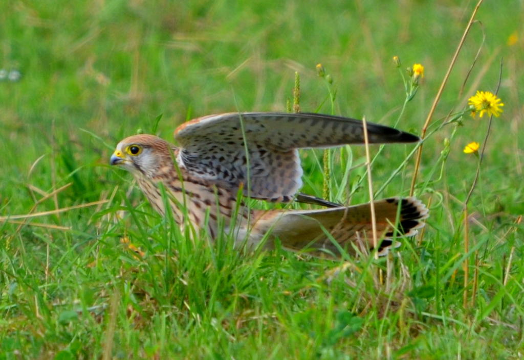 Unsere häufigste Falkenart, der Turmfalke, jagt gern in der offenen Landschaft. Hierzu steht er zumeist im Rüttelflug in der Luft, um dann pfeilschnell auf seine Beute, in der Regel Feldmäuse, hinabzuschießen. Überwiegend brütet dieser schöne Vogel in den Nieschen hoher Gebäude, wie etwa Kirchen.